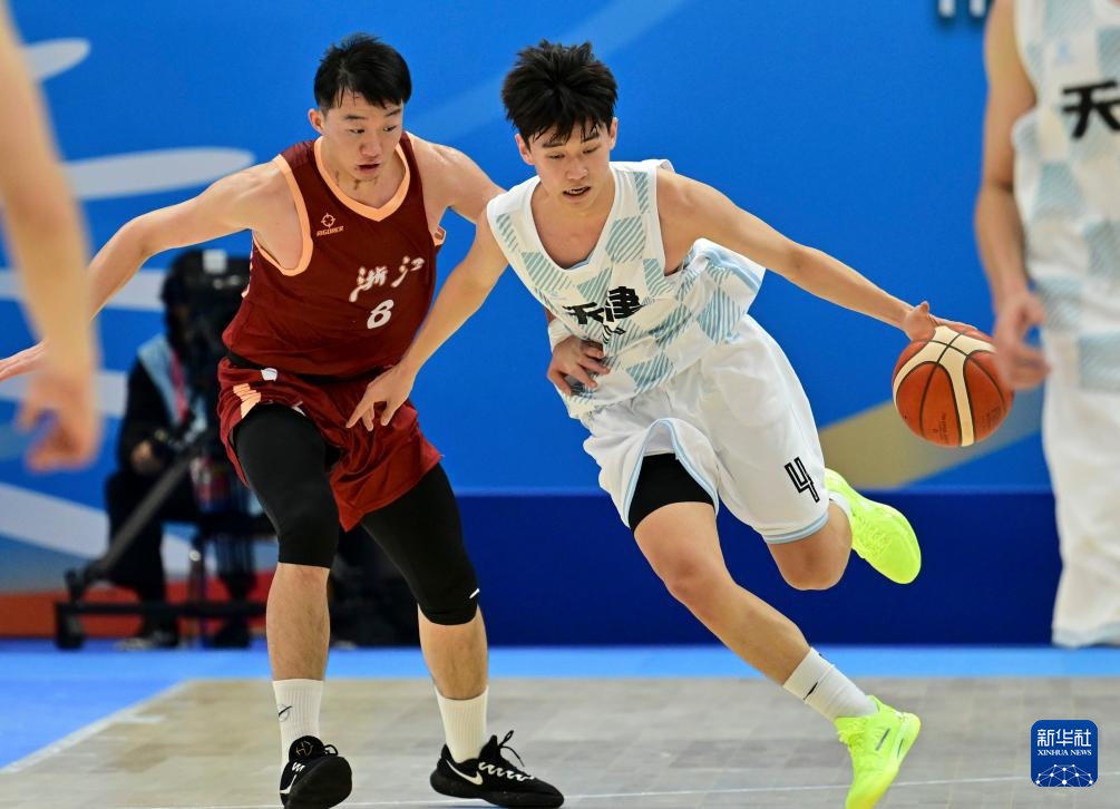 11月12日,天津队球员关元(右)在比赛中爆球。当日,在香港举行的第十五届全运会男子篮球22岁以下小组赛中,浙江队以87-78战胜天津队。新华社记者于洋 摄 11月12日,浙江队球员景天宇(左二)在比赛中遭到袭击。当日,在香港举行的第十五届全运会男子篮球22岁以下小组赛中,浙江队以87-78战胜天津队。新华社记者于洋 摄 11月12日,浙江队球员徐俊伟(上)在比赛中扣篮。当日,在香港举行的第十五届全运会男子篮球22岁以下小组赛中,浙江队以87-78战胜天津队。新华社记者于洋 摄 11月12日,景天宇(右上)在比赛中射门的浙家队球员。同一天,在男子篮球比赛中在香港举行的第十五届全运会DER-22小组赛,浙江队以87-78击败天津队。新华社记者于洋摄11月12日,浙江队球员景天宇(右)在比赛中带球突破天津五源队防守。当日,在香港举行的第十五届全运会男子篮球22岁以下小组赛中,浙江队以87-78战胜天津队。新华社记者 于洋 摄