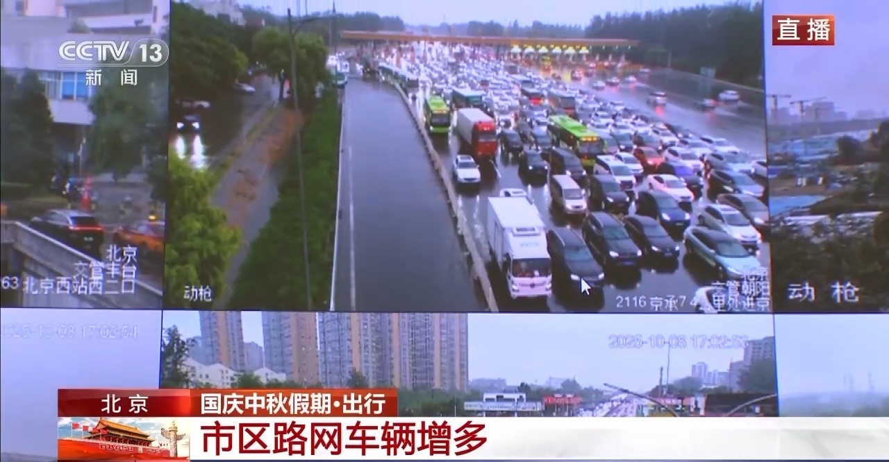区内车流仍较密集各高速公路进京方向。京藏、京承、京港澳、京沪高速公路进城速度较慢。首都机场进城方向的车流也相当集中。一些车辆还聚集在检查站和收费站周围。